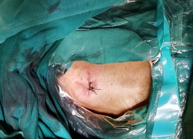 團(tuán)隊前期經(jīng)過多次討論,制定了周密的手術(shù)策略和預(yù)案。由于患者已是近九旬的超高齡老人,傳統(tǒng)外科開胸手術(shù)風(fēng)險極高,純介入經(jīng)血管三尖瓣替換能夠明顯減少創(chuàng)傷。術(shù)中陳茂及馮沅教授結(jié)合體表定位在造影指示下精準(zhǔn)穿刺右側(cè)頸靜脈并預(yù)置兩把血管縫合器。成功建立經(jīng)皮血管入路后在食道超聲和DSA的引導(dǎo)下順利完成人工瓣膜植入,術(shù)后超聲和造影顯示人工三尖瓣同軸性良好,瓣架固定牢靠,無反流和瓣周漏,平均跨瓣壓差降為1mmHg。術(shù)畢收緊預(yù)置的血管縫合器縫線完成止血,縫合效果滿意,在手術(shù)室即刻拔除氣管插管。