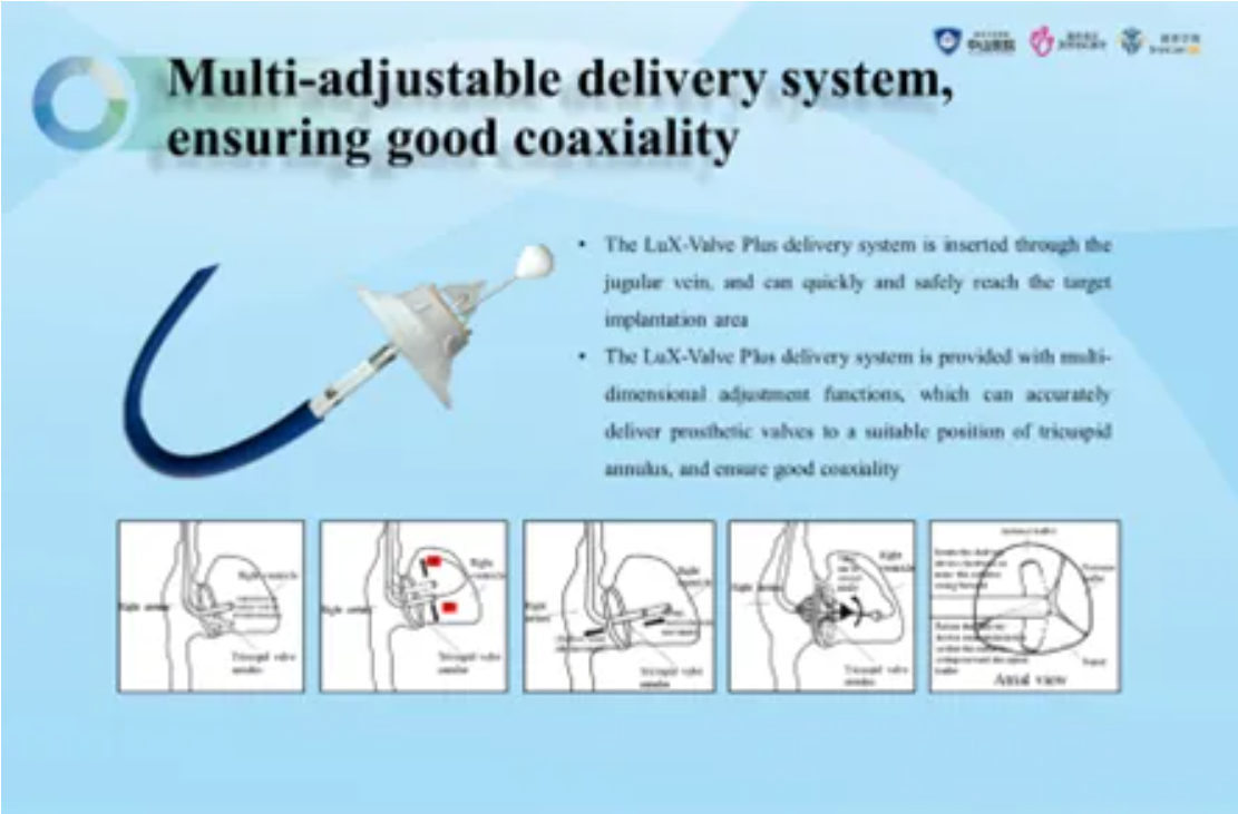 2022年,隨著復旦大學附屬中山醫院的葛均波院士牽頭完成FIM研究并將結果發表于國際頂級期刊《Eurointervention》,LuX-Valve Plus獲得國內外的廣泛關注。有別于傳統經股靜脈入路三尖瓣介入手術器械,LuX-Valve Plus創新性采用經頸靜脈作為手術主入路,可將人工瓣膜快速送達目標手術區域,整體輸送行程較短,有效降低入路周邊解剖組織并發癥及術中出血風險。同時,魏來教授表示,LuX-Valve Plus輸送系統所具有的聯動調彎功能,面對右心房較小的患者,可在進入右心房后快速進行調彎遞送,從容調整,快速同軸,降低手術整體風險并安全進行手術。
