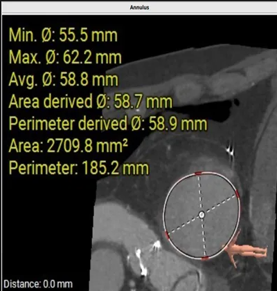 三尖瓣環平均周長徑58.8mm,最大直徑62.2mm