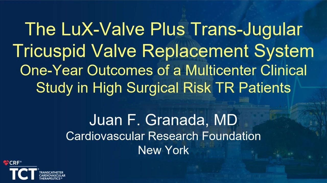 10月29日,本次 TCT 2024 會議的結構心日程中,來自美國心血管研究基金會(Cardiovascular Research Foundation, New York, U.S.)的Juan F. Granada教授攜手中山醫(yī)院葛均波院士團隊一同正式公布了 LuX-Valve Plus TRAVEL II 確證性臨床研究的1年期試驗結果。