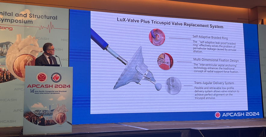在2024年12月8日中國香港舉行的APCASH大會“Transcatheter Valve Replacement For The Forgotten Valve - The New Frontier”環節,LuX-Valve Plus 成為會議的焦點,展示了其在經頸靜脈三尖瓣置換(TTVR)中的卓越表現以及在臨床治療中的創新潛力。通過一年的臨床隨訪數據以及真實病例分享,LuX-Valve Plus 進一步證明了其在解決三尖瓣反流治療中未滿足需求方面的重要作用。